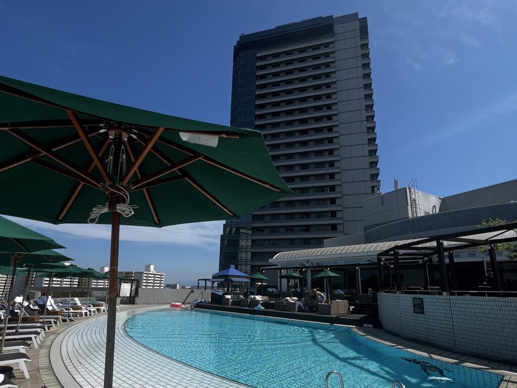 大阪みたいな都会でこんなゆっくり屋外プールで過ごせるのって結構穴場かも?!