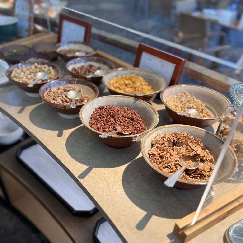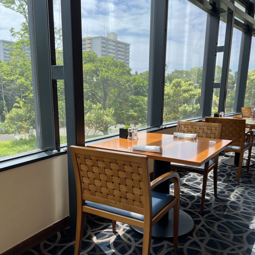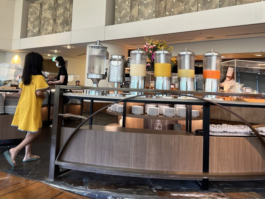 天井が高く、壁も窓ガラス一面になってて明るい朝食会場でした
