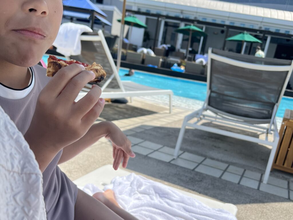 軽食やドリンクも購入できるのでプールサイドでお昼ご飯も食べれて、大阪なのにリゾート気分が味わえてすごい良かったです