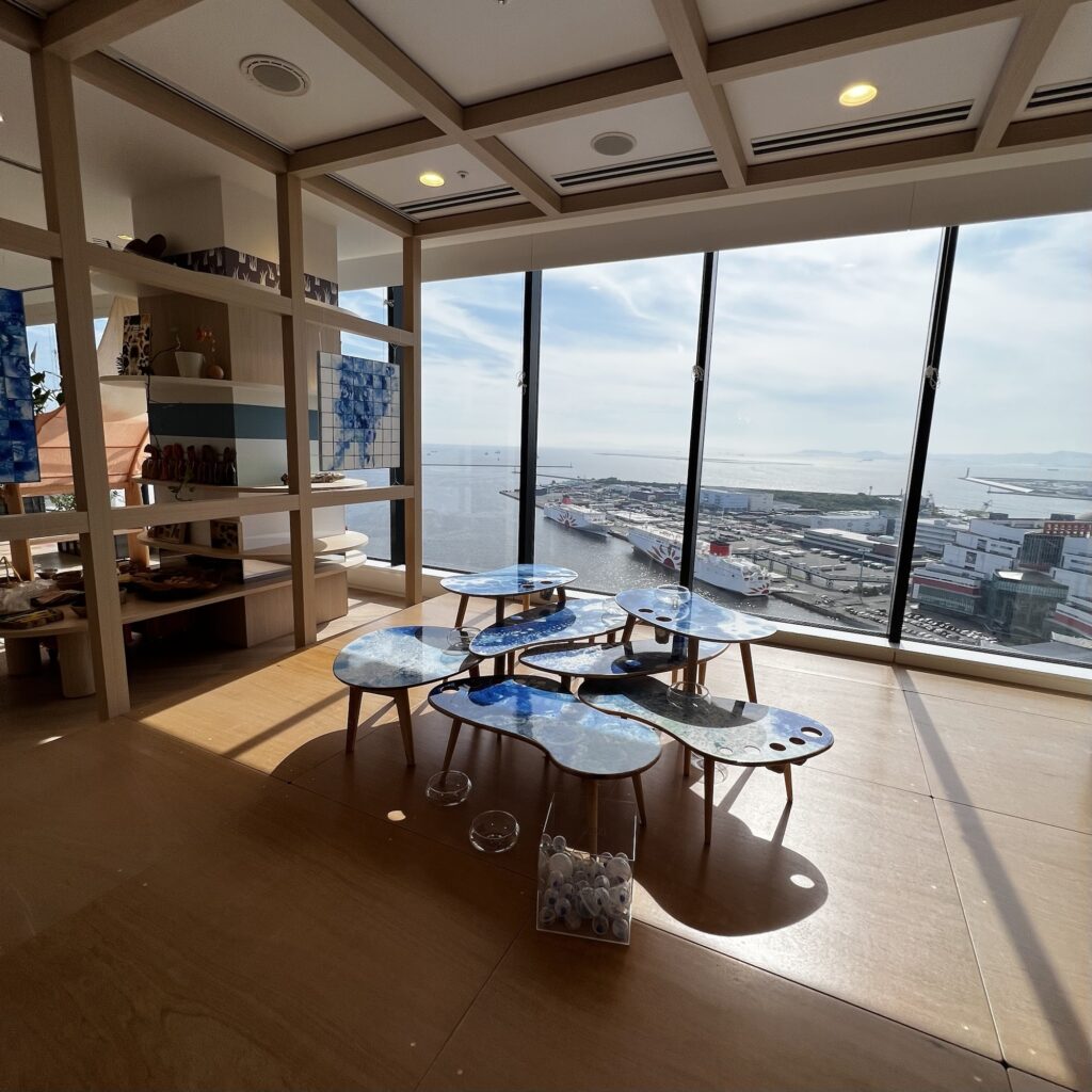 最上階にありガラス張りの壁に外は大阪湾ということもあって
