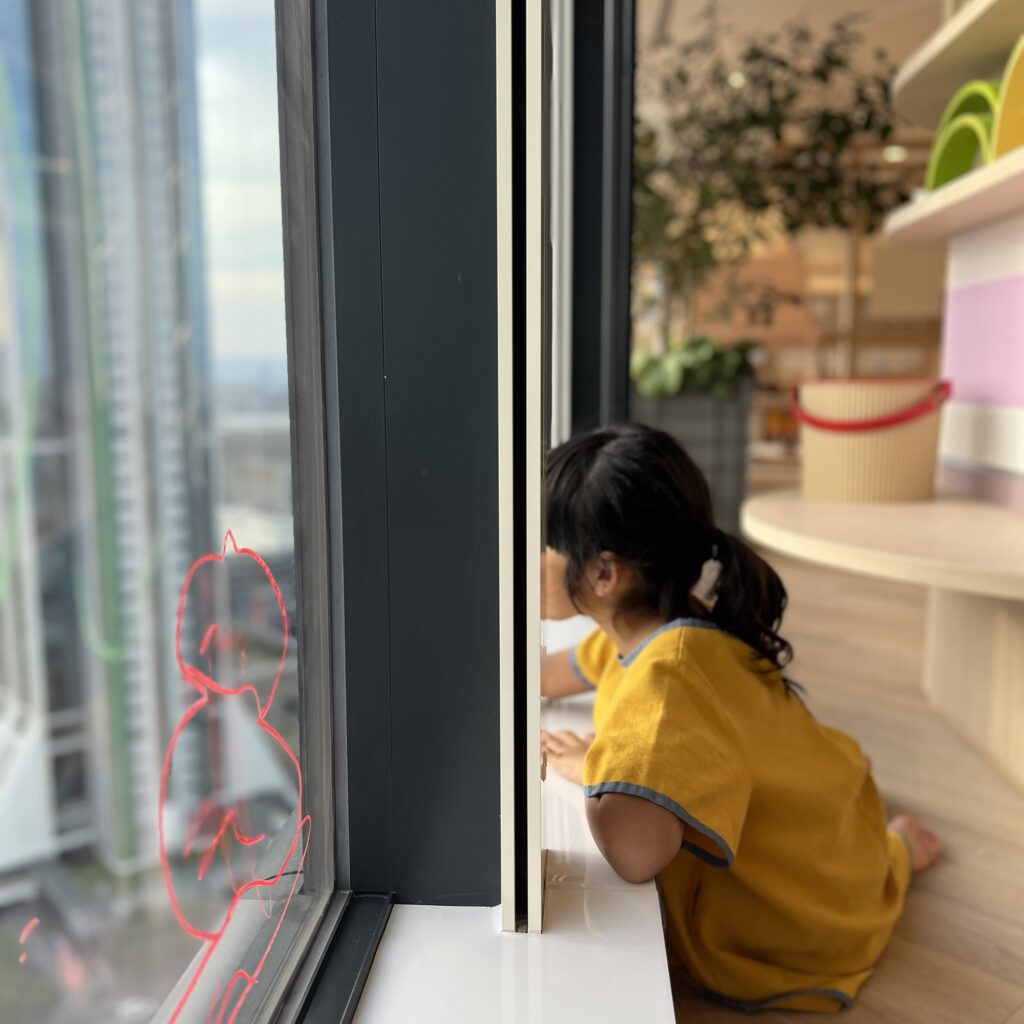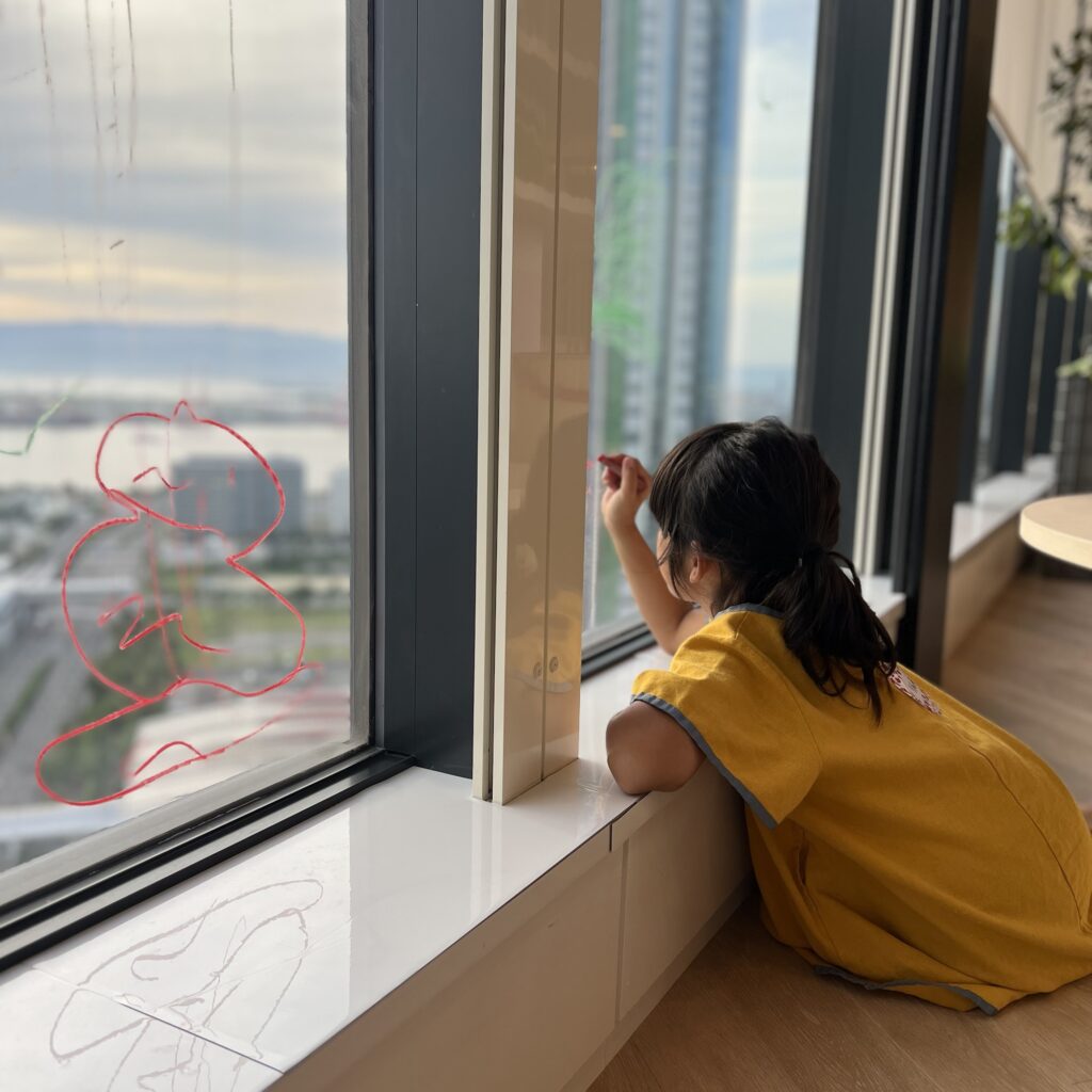 壁に大きなホワイトボードがあるのですが、窓にも書き放題です