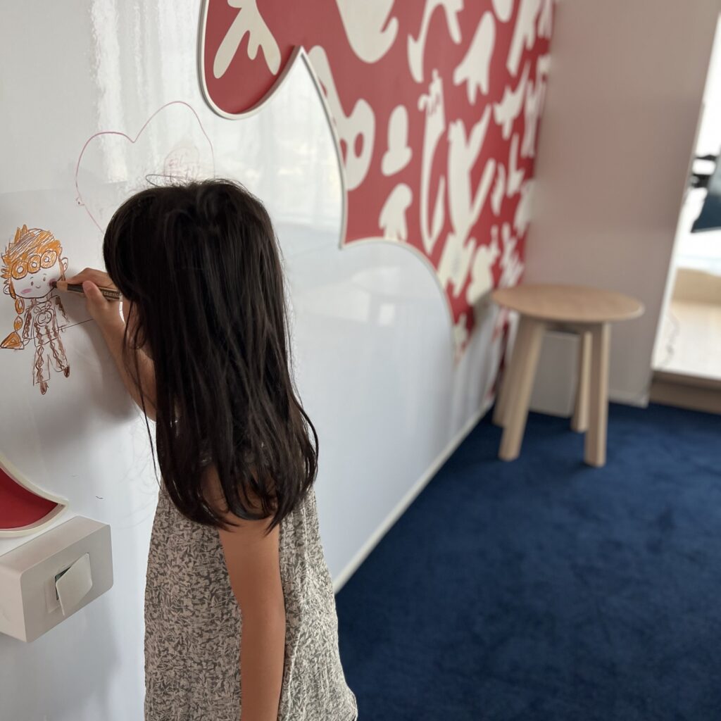 このお部屋、『アトリエ』とつく名前のお部屋なだけあって、壁にお絵描きができるのです