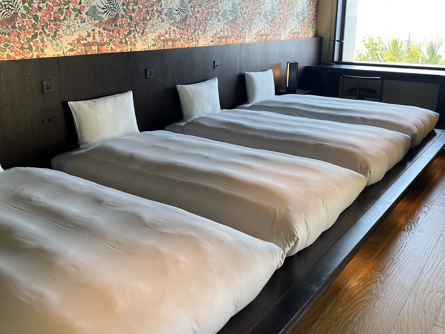 4人用の部屋なのでベッドが4つあって贅沢に使わせていただきました。笑