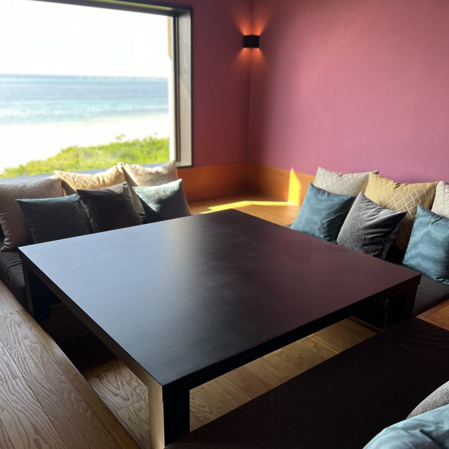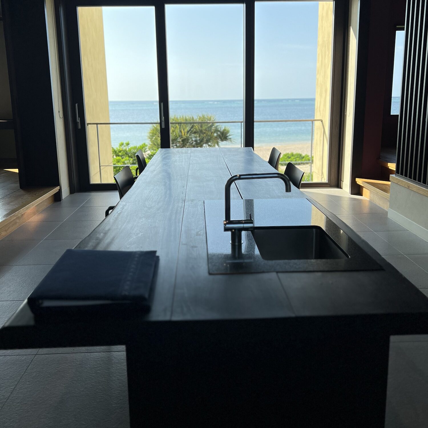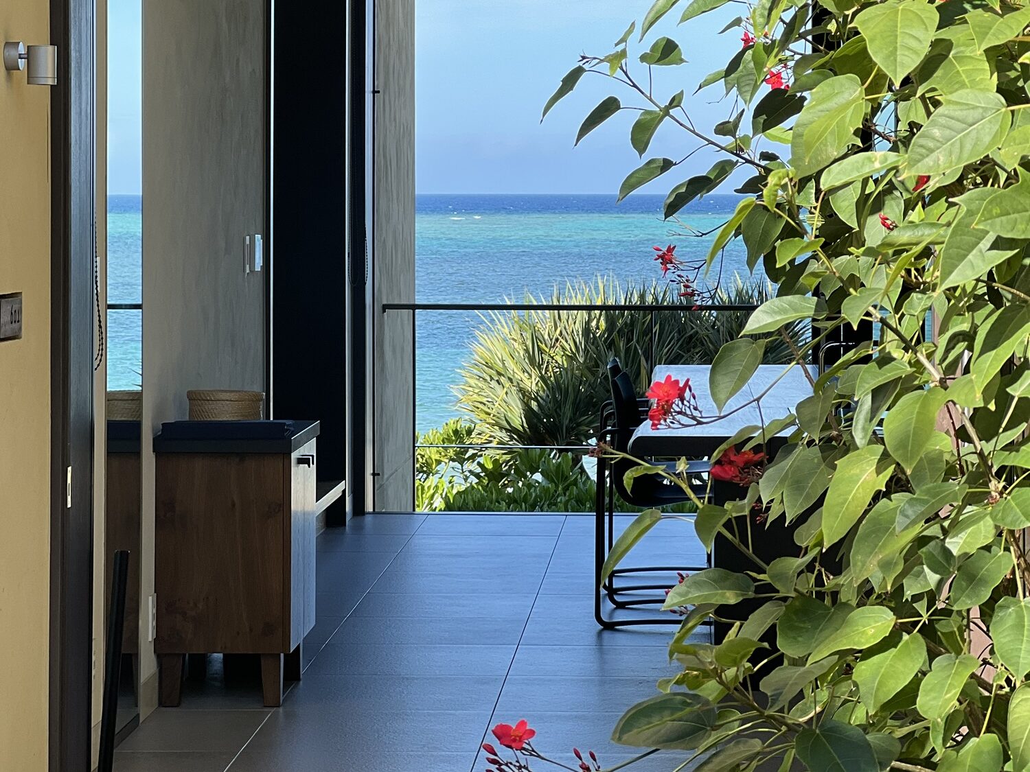 やちむんも素敵だし、こういう海に浮かんでいるような演出も沖縄らしくて最高です