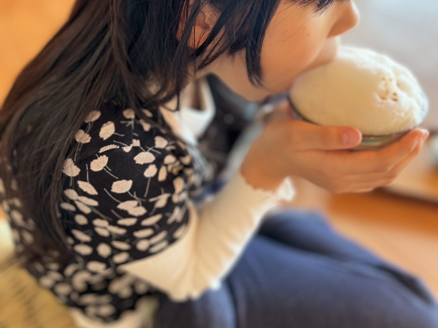 ママー!泡のおひげできるよ!!笑