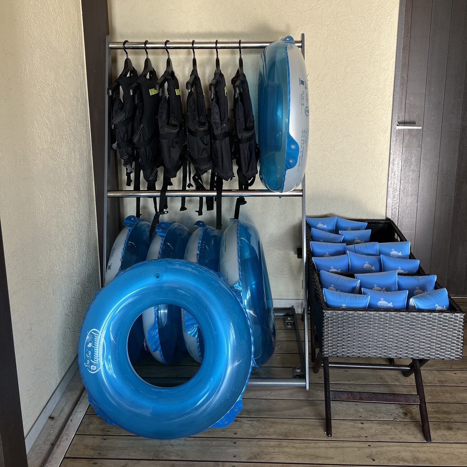 - プールには浮具のみ(ライフジャケットとアームリング)遊び道具は持参しましょう