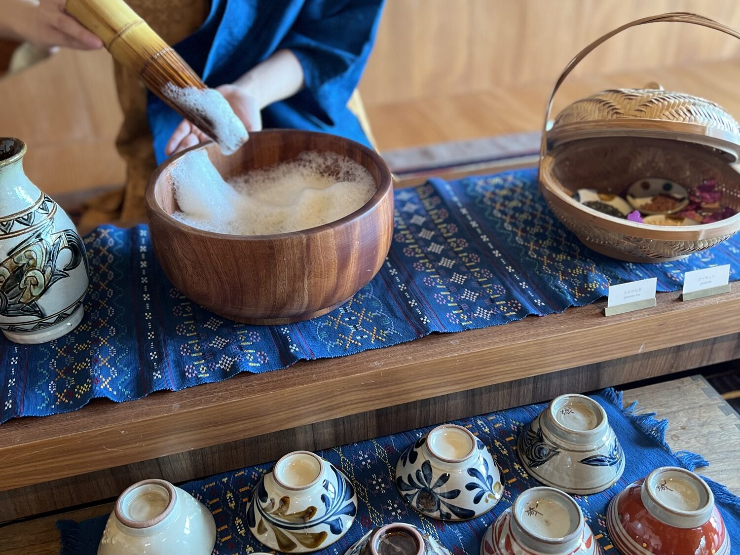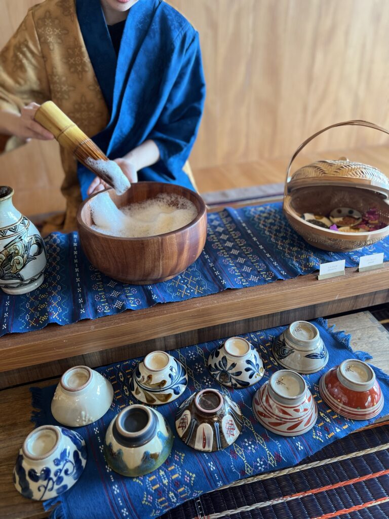 チェックインしてすぐ、ちょうどブクブク茶という沖縄の伝統作法で作られたお茶が振舞われているとのことで