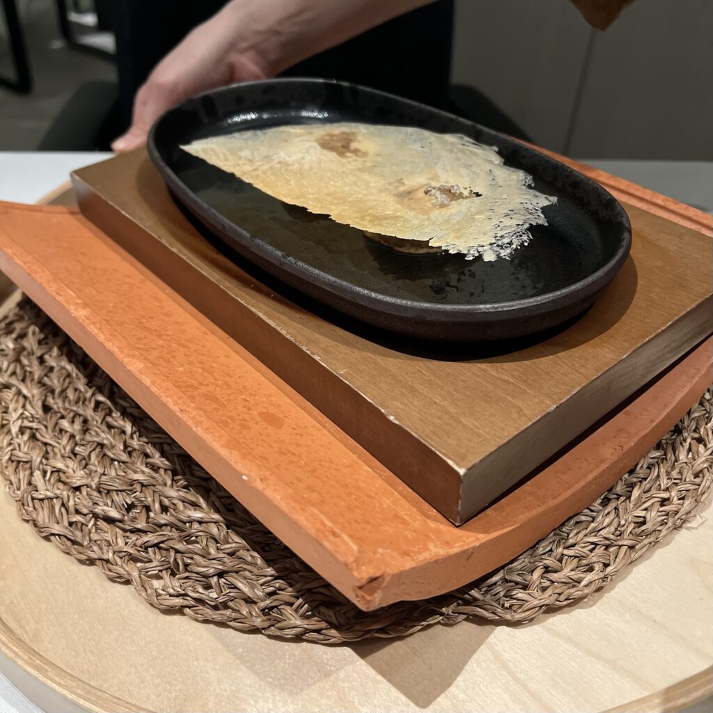 熱々の鉄板で焼き上げるパリッとした食感とトロリとしたてびちが絶妙な一皿でした!