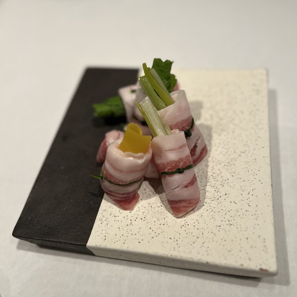 薄切りにした豚肉で旬の野菜を巻いた「ロートロ」