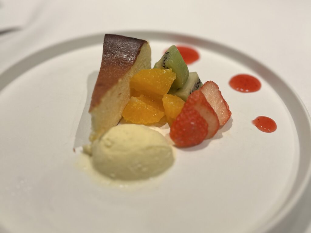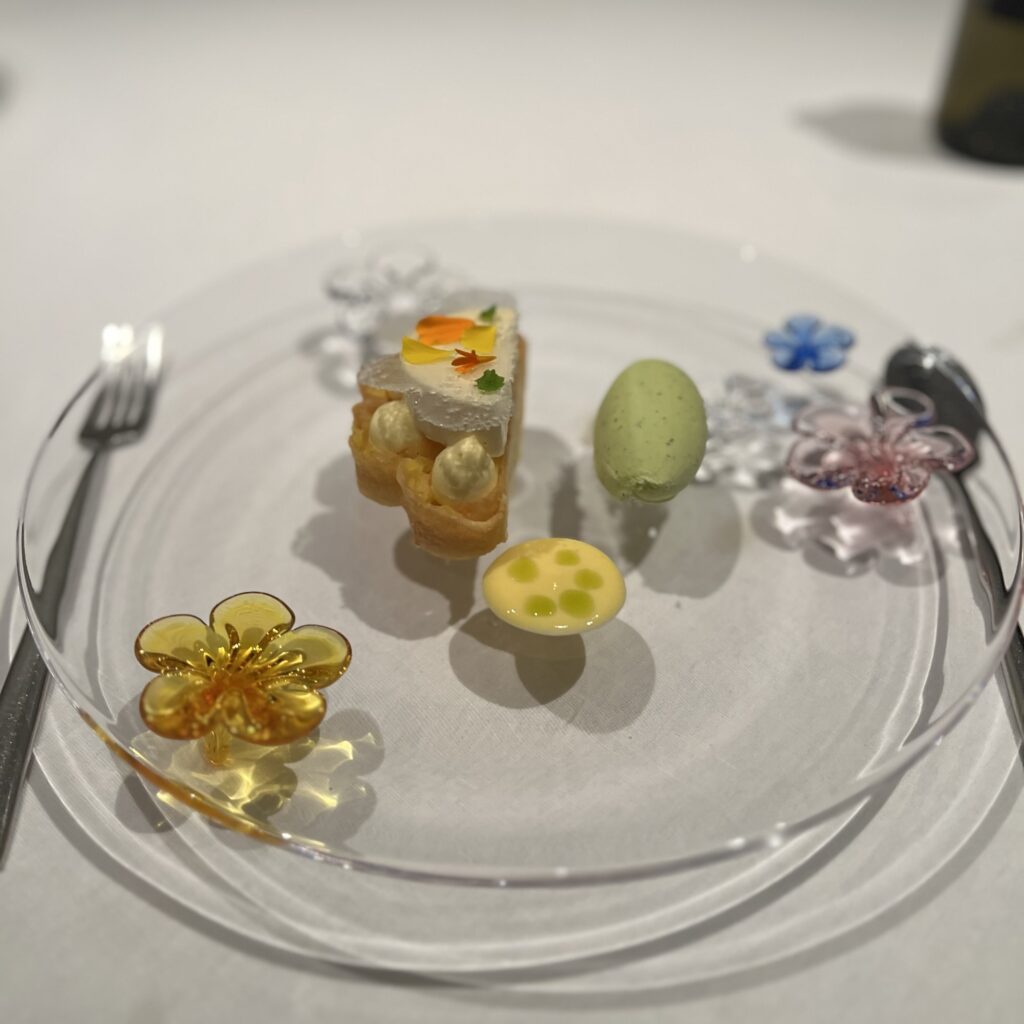 タンカンとシークヮーサーの重めのムースとさっぱりとしたディルのアイスの組み合わせがとても美味しかったですが