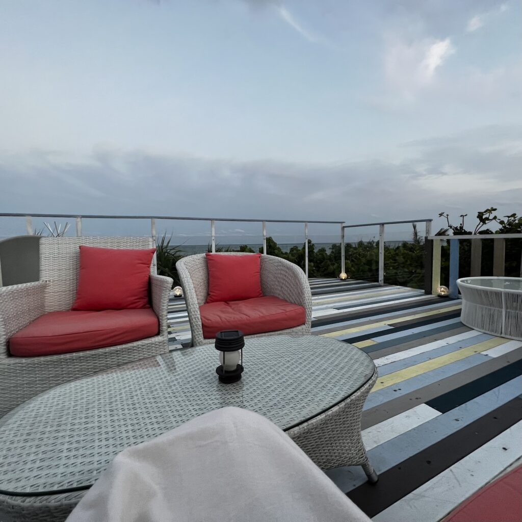 ルーフバルコニーのようなところがあり、ここで先ほどのバーでお酒を注文して飲むことができます