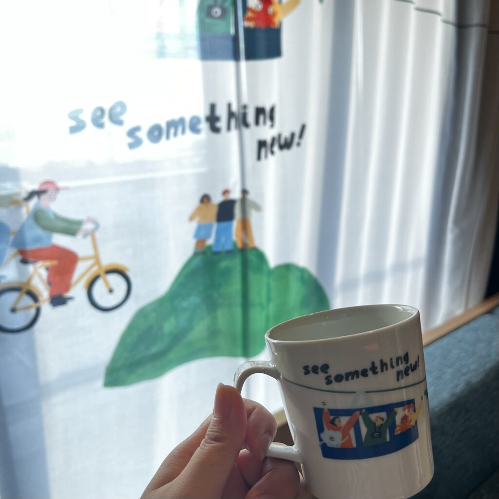 カップがお部屋のカーテンのイラストのものがプリントされてて可愛かったです