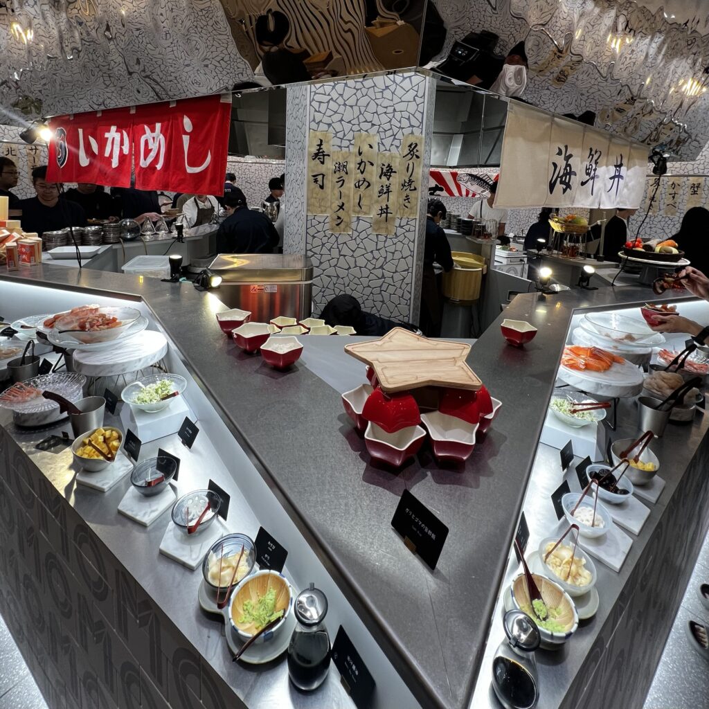 ビュッフェの中心は五稜郭みたいに五角形になっています