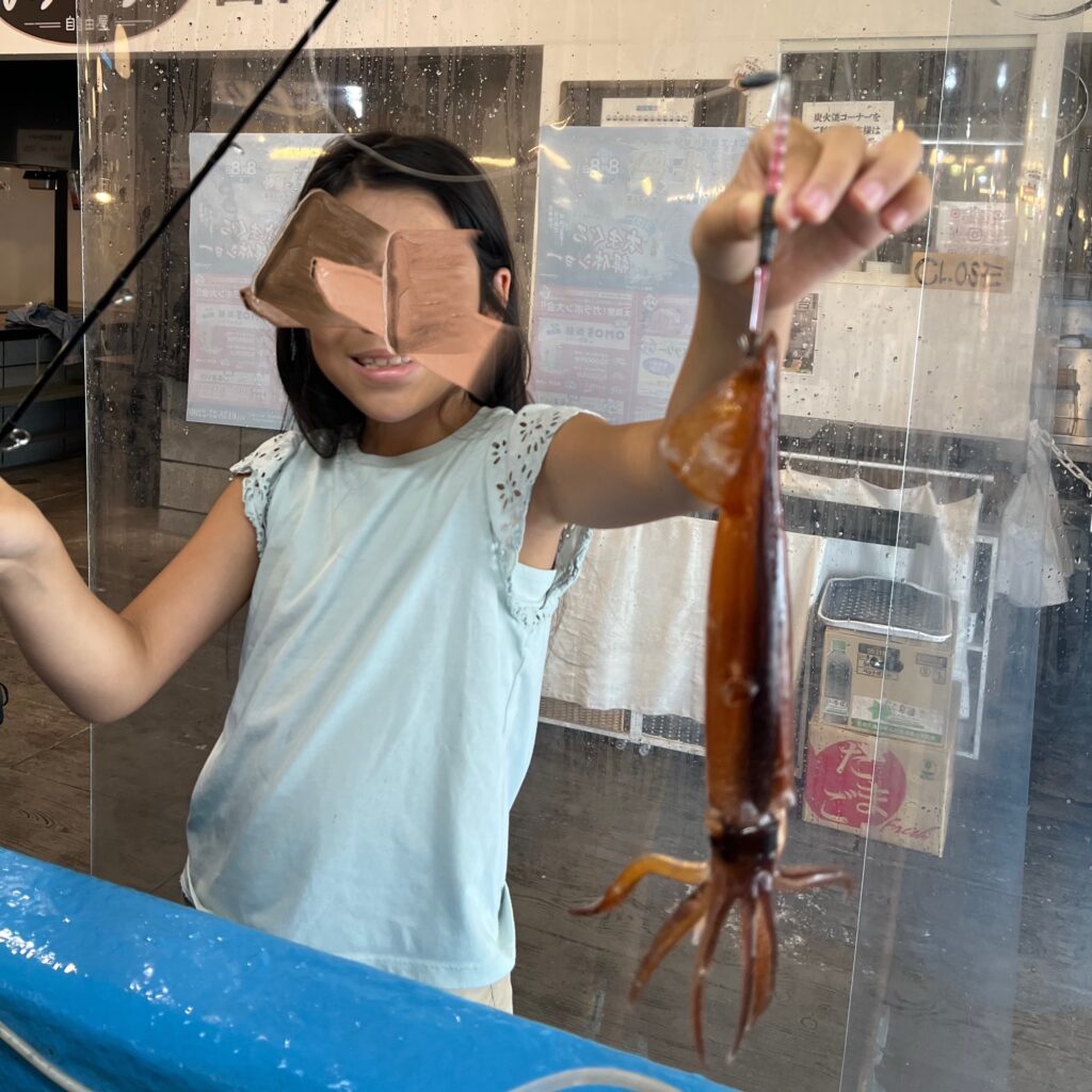 釣った後はその場でさばいてくれて新鮮なイカ刺しが食べれてそれがびっくりするくらい甘くておいしい!娘は肝まで美味しいと言って完食していました。笑