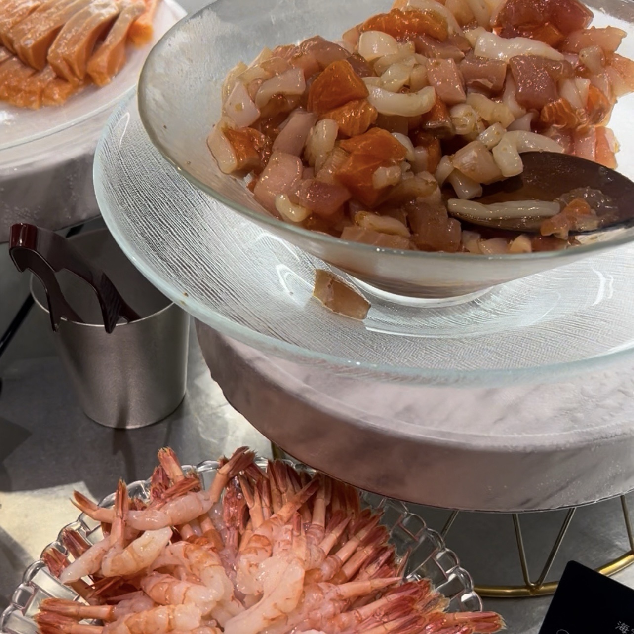 ビュッフェの中心は五稜郭みたいに五角形になっています