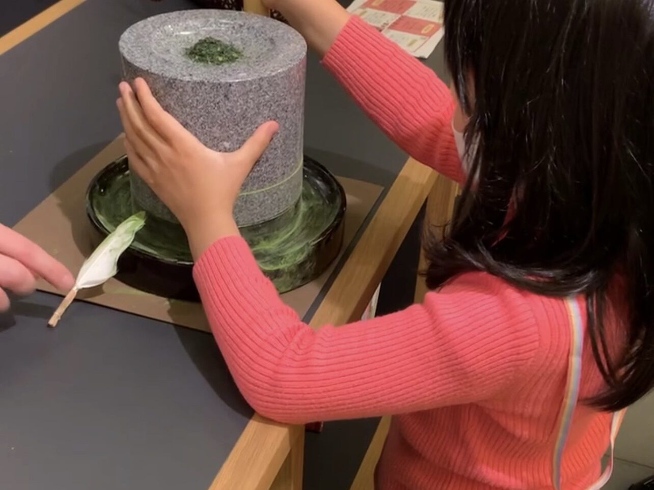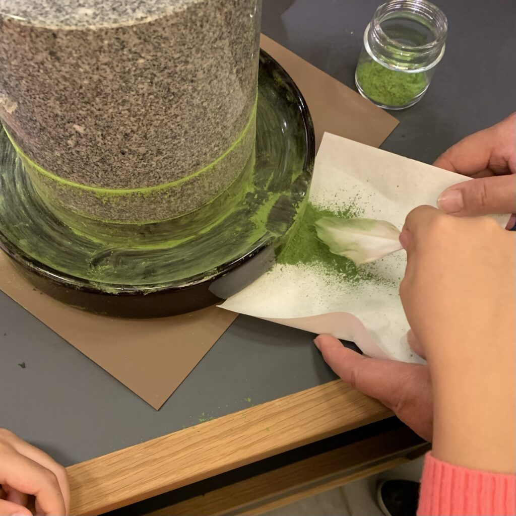 抹茶がどうやってできるのか、そして自分で挽く体験ができて楽しんでいました♪