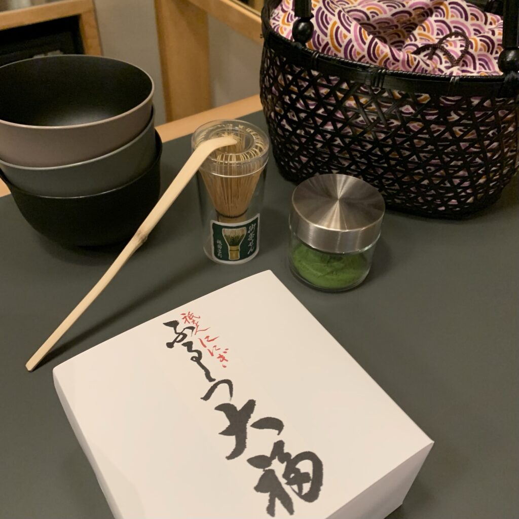 挽いた抹茶と、貸し出しのお茶キットを部屋に持って帰っていただけます◎
