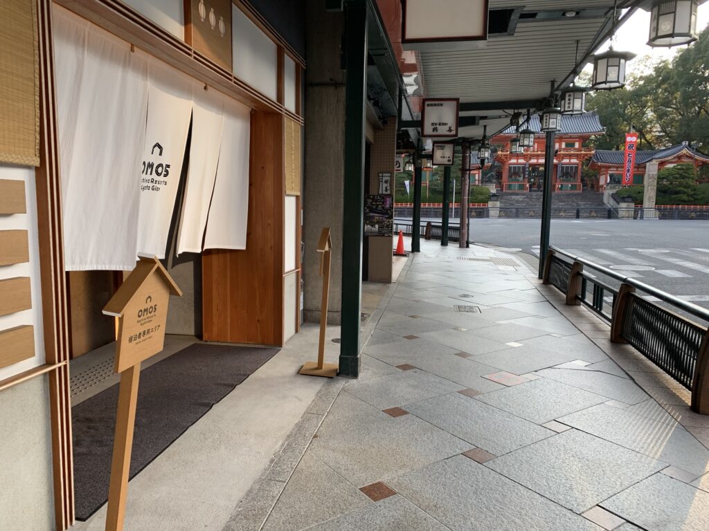 八坂神社の西門がすぐそこにあるとこにOMOがあります