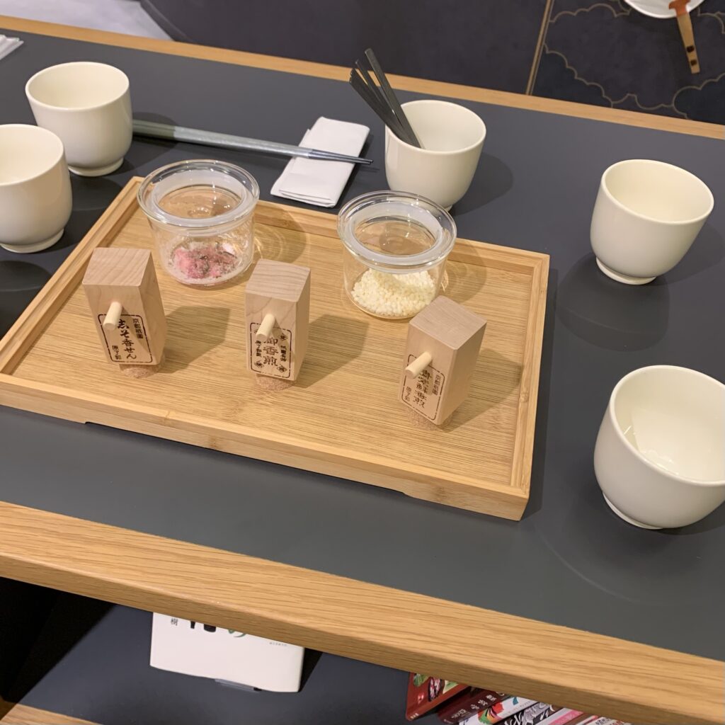 1時間の散歩を終えてOMOベースに戻ると御香煎という漢方薬の原料を数種類合わせて香ばしく煎り、粉末状にして焼き塩で味つけしたものをお湯に入れたものをいただけます