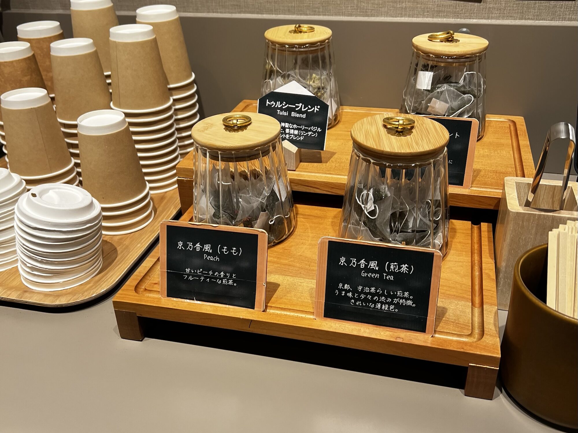 さっき有料コーナーにあったお茶の一部がウェルカムドリンクとして置かれていました
