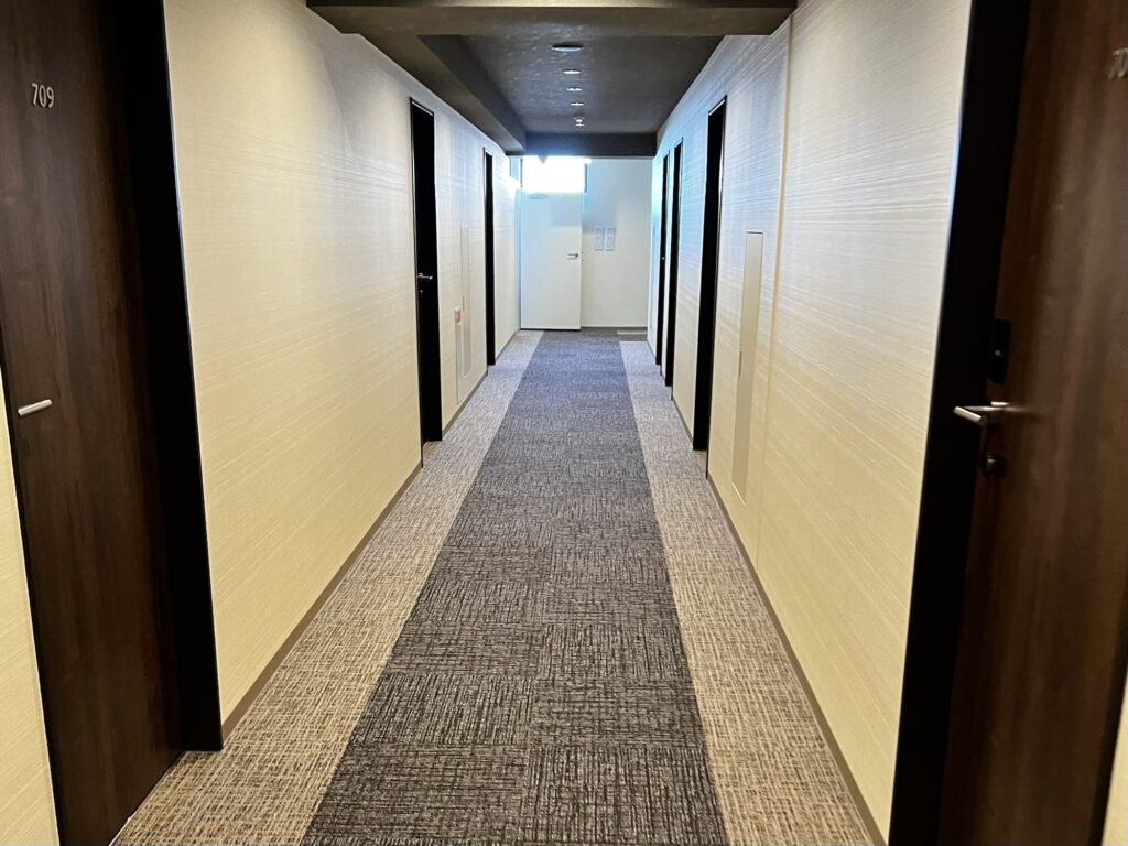 エレベーターをあがって客室に向かいます