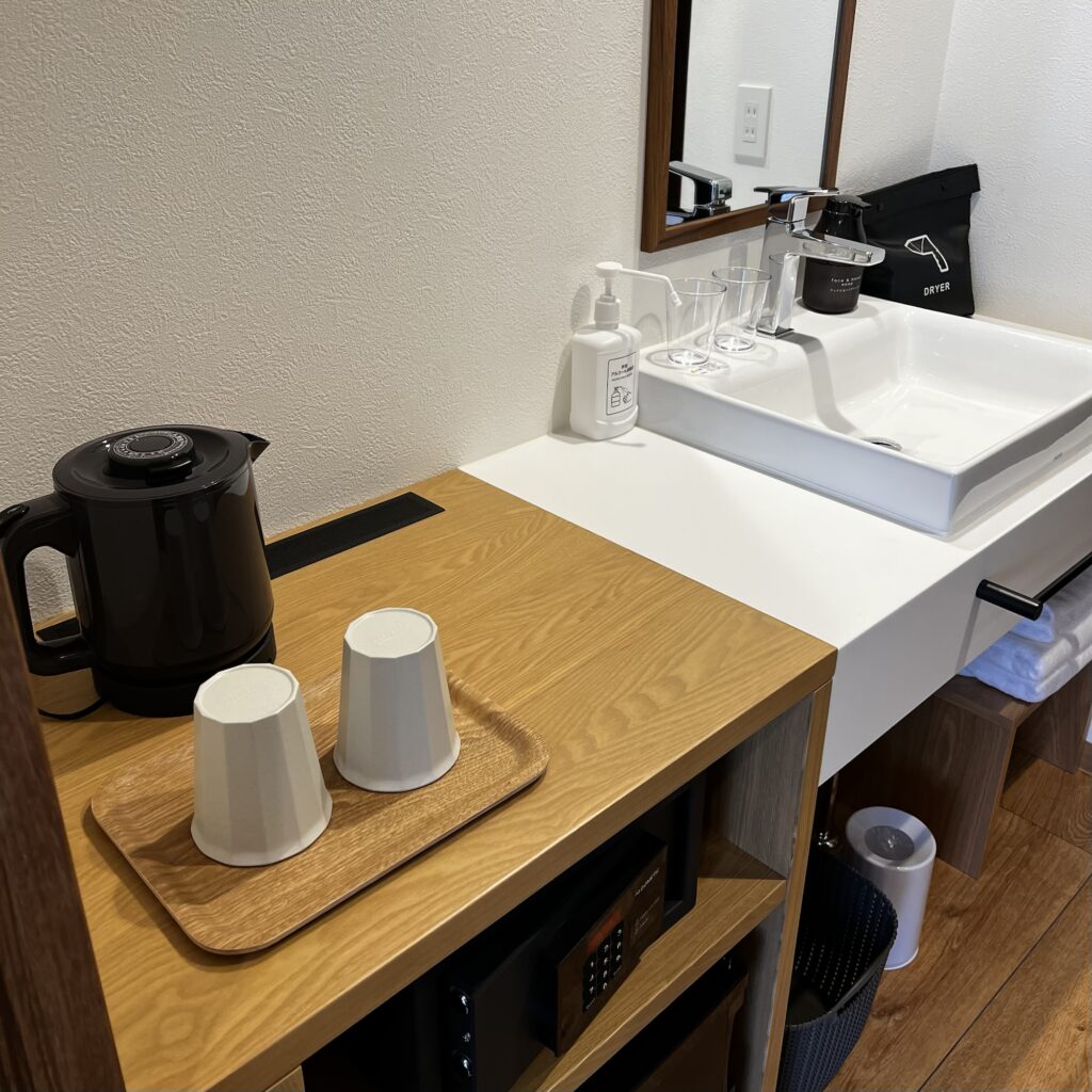 カウンター横にアメニティーがありそれを必要数ピックします
