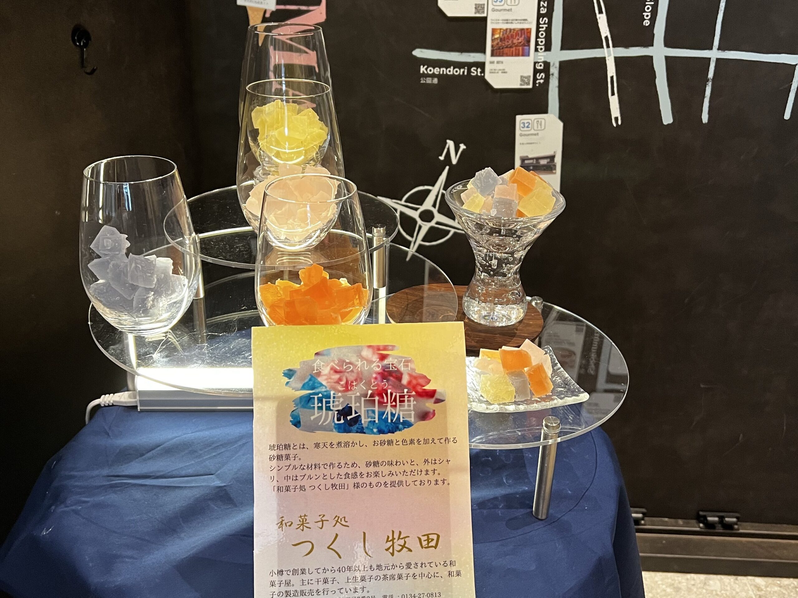和菓子処『つくし牧田』さんの琥珀糖にお茶もついて来ました