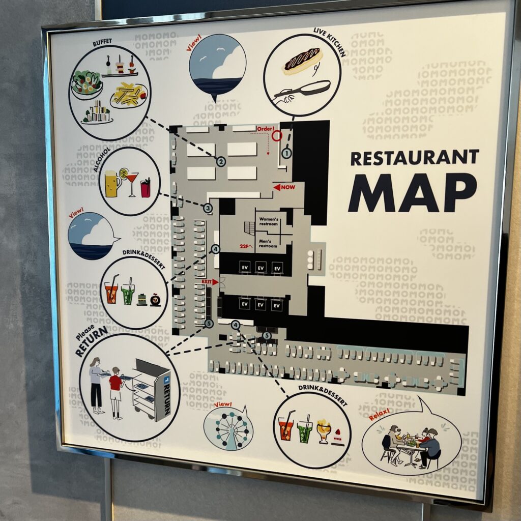 すでに通り過ぎていましたが、エントランス入ってすぐ横にOMOのシンボルであるGo-KINJOマップがお出迎えしてくれていました。おすすめの飲食店などを紹介してくれるマップですが