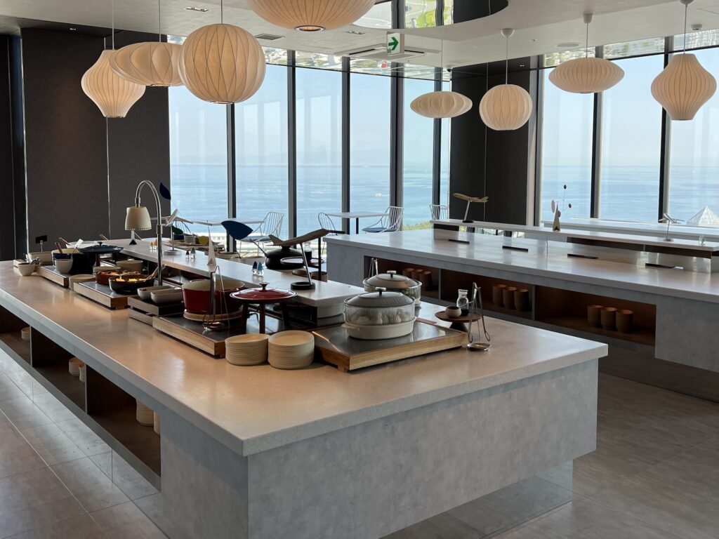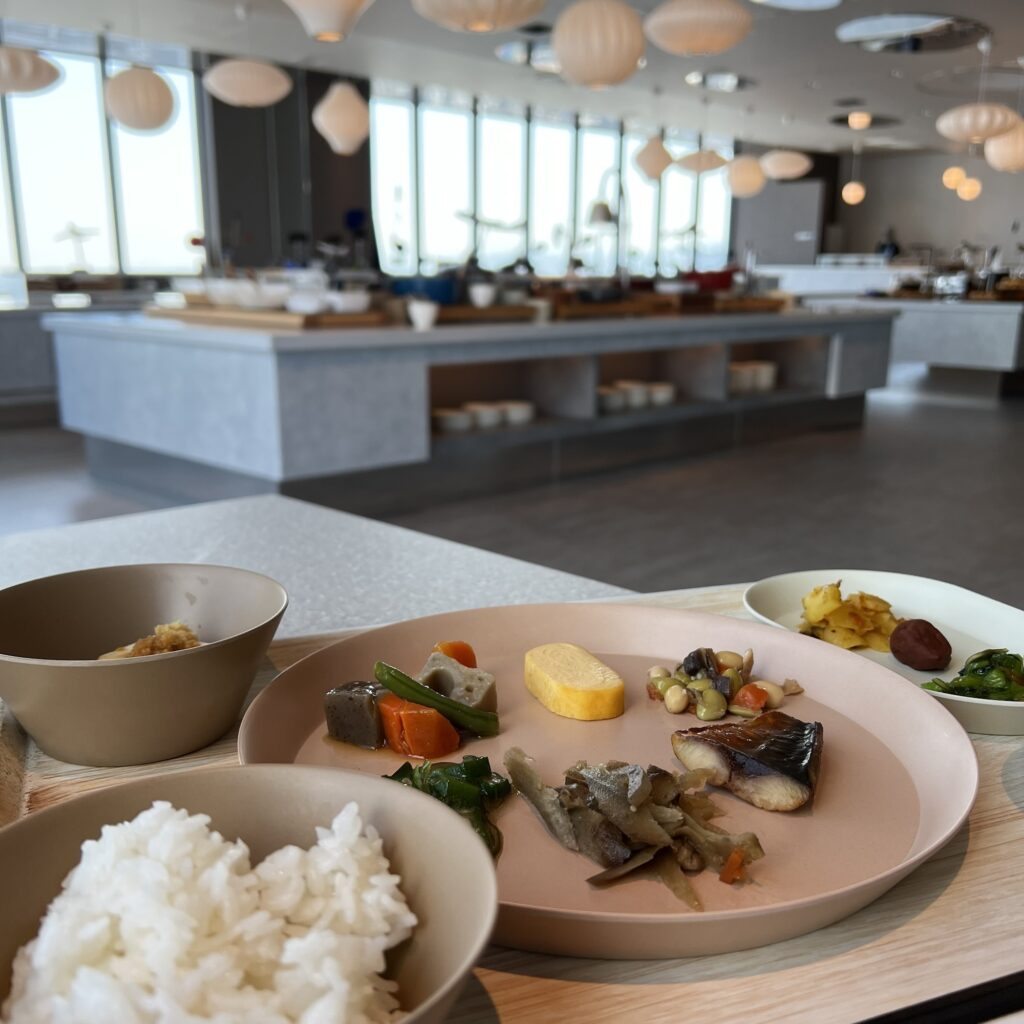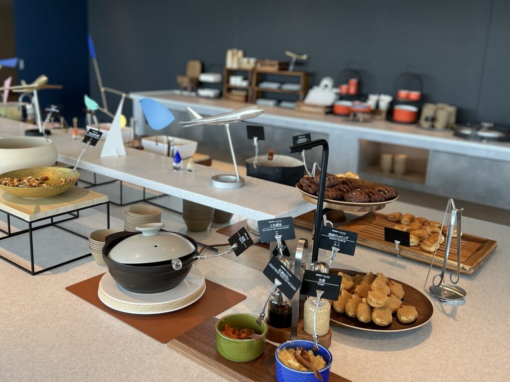 宿泊客の数に合わせているのか、朝だからなのか料理が並んでいないスペースがあったのが気になった