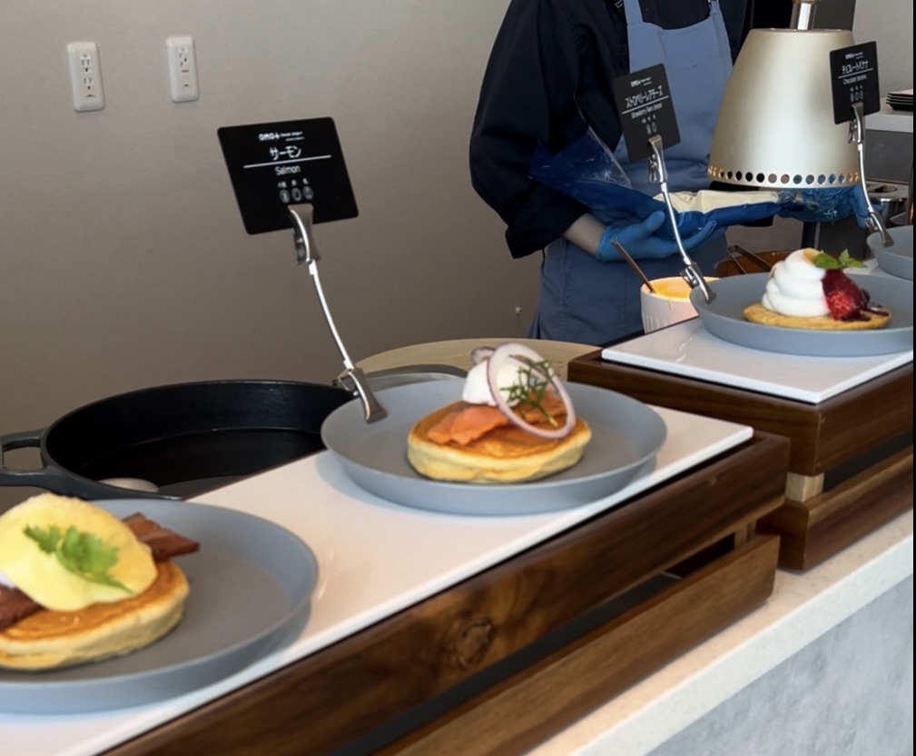 この日は焼き立てパンケーキがライブキッチンで提供されてて